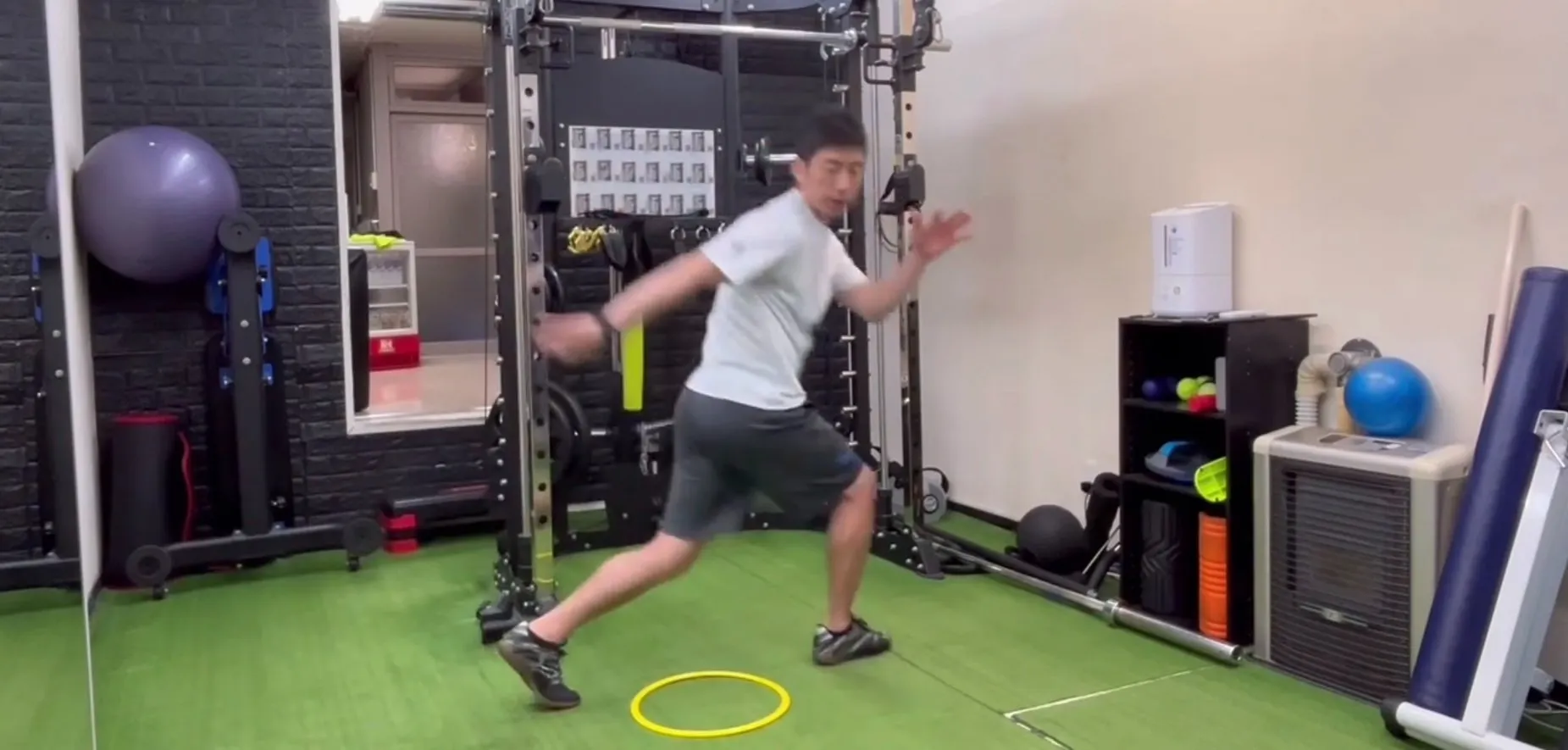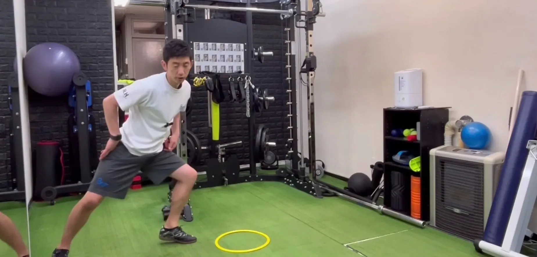 動画では「リング」を使ったヒップクロスオーバーのフットワークトレーニングをご紹介します。